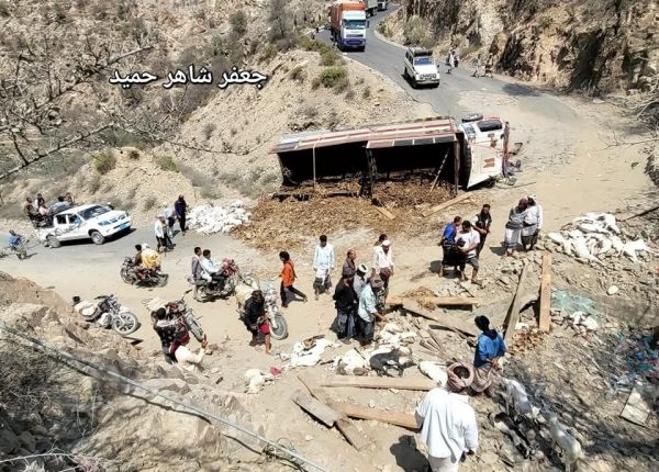 تداول ناشطون عبر وسائل التواصل الاجتماعي صوراً تظهر انقلاب شاحنة محملة بـ 100 رأس من الأغنام، في أحد الطرق الجبلية بمديرية القبيطة في محافظة لحج، جنوبي اليمن.