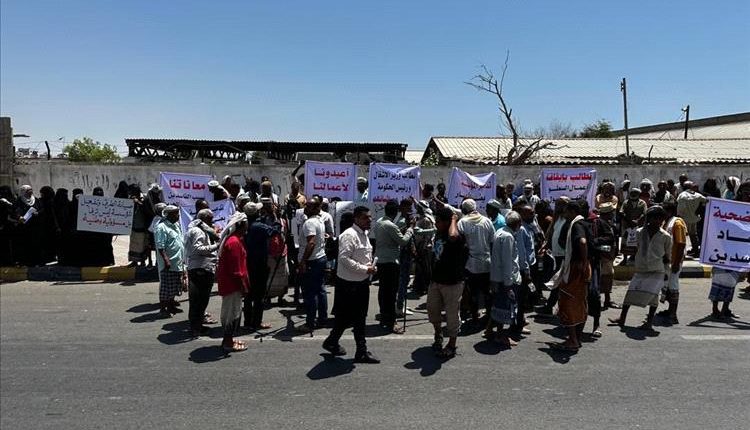 نظم عمال وموظفو المؤسسة العامة للطرق والجسور في عدن، اليوم الأحد، وقفة احتجاجية أمام مقر مجلس الوزراء في خور مكسر، للمطالبة بتصحيح مسار صيانة الطرق وإنقاذ المؤسسة من الانهيار الكامل.