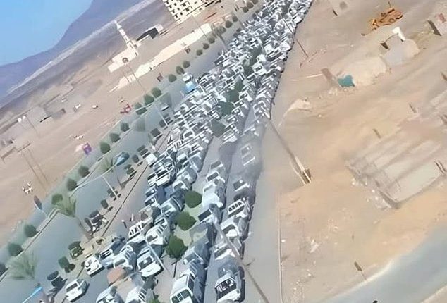وشوهدت طوابير طويلة أمام محطات الوقود المفتوحة في حين أغلقت معظم المحطات في المدينة أبوابها بمبرر انعدام الوقود.