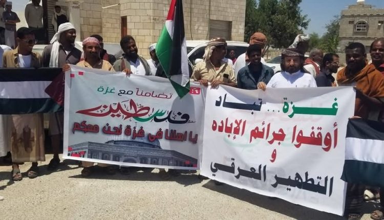 نظم أبناء منطقة العبري في مديرية الغيضة مركز محافظة المهرة اليوم الجمعة، وقفة احتجاجية تندد بالجرائم التي يرتكبها الاحتلال الإسرائيلي بحق المدنيين الفلسطينيين في قطاع غزة.