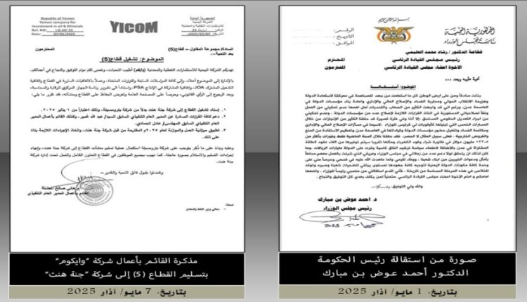 كما تشير الوثائق أيضاً إلى مساعٍ لإنشاء كيانات مستقلة لإدارة قطاع النفط خارج إطار حكومة الشرعية، في خطوة قد تؤدي إلى تفتيت الإيرادات وزيادة تعقيدات الوضع الاقتصادي في مناطق سيطرة الشرعية، وتشير الوثائق أيضاً إلى محاولات إعادة تصدير النفط من موانئ حضرموت بترتيبات لا تمر عبر صنعاء، وهو ما ترفضه الأخيرة وتعتبره قرصنة ونهباً لمورد سيادي يخص أبناء اليمن جميعاً.
