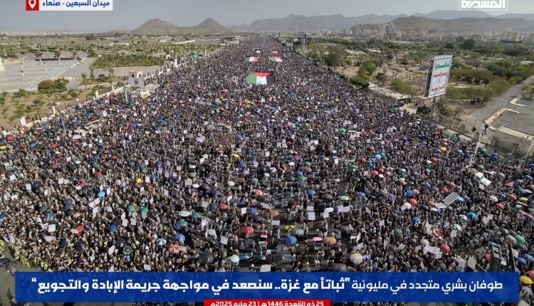 وأشاد بيان المسيرات بالعمليات العسكرية التي تنفذها القوات المسلحة اليمنية ضد أهداف إسرائيلية، واصفا إياها بـ”الضربات البطولية التي كبدت العدو خسائر جسيمة”، مع تأكيد الاستمرار في هذا النهج “دفاعًا عن الحق الفلسطيني”.
