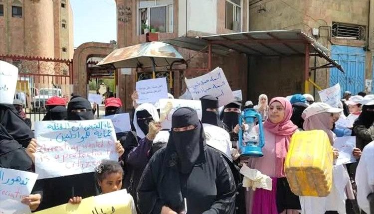 حملت نساء مدينة تعز حكومة التحالف مسؤولية الانهيار الخدمي والمعاناة المعيشية وسط مطالبات بحل أزمات المياه والكهرباء التي تتفاقم بالمدينة.