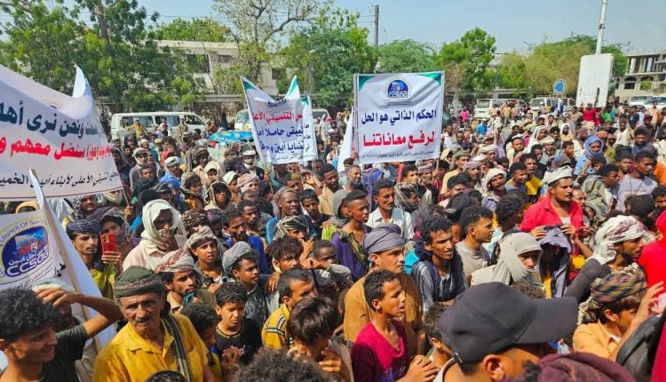 وأعلن المحتجون في بيان صادر عن التظاهرة، عن تمكسهم بحقوقهم الكاملة في إدارة شؤون محافظتهم ذاتياً بعيداً عن المناطقية والتدخلات الخارجية، ودعوا إلى تحرك شعبي واسع في كافة المديريات لاستعادة القرار السيادي للمحافظة.