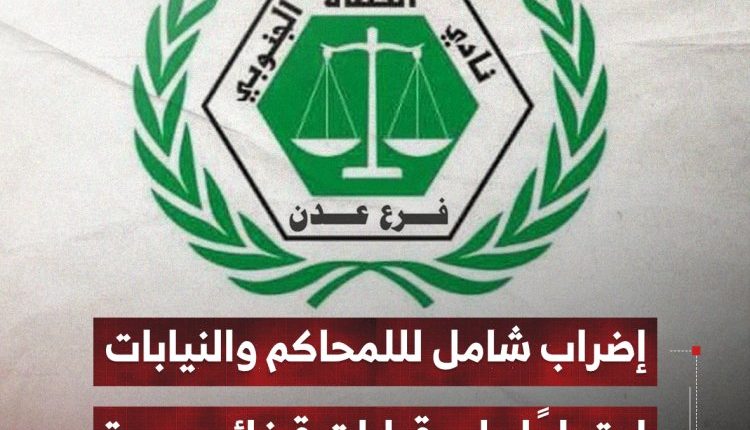 تُعلق الهيئة الإدارية لنادي القضاة الجنوبي بمحافظة عدن التابعة لسيطرة التحالف، العمل في كافة محاكم ونيابات المدينة، ابتداء من اليوم الأحد.