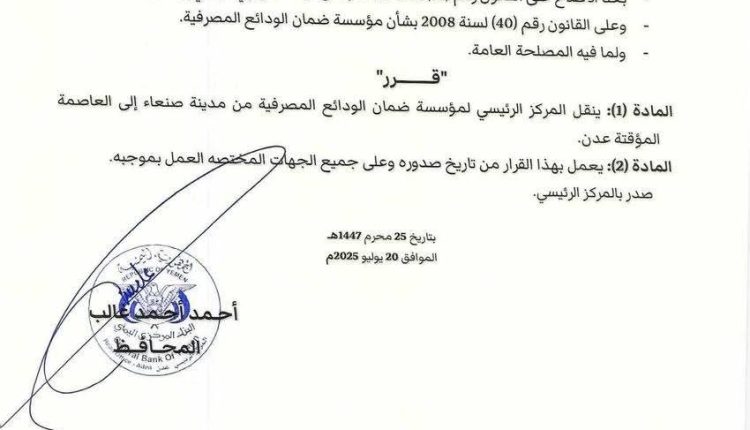 “عدن“| في محاولة لنهب أموال صغار المودعين باليمن.. إصدار قرار بنقل “مؤسسة الودائع“ من صنعاء..!