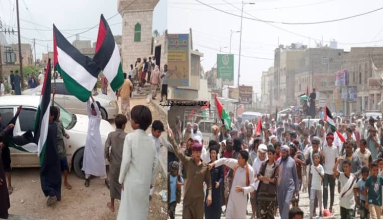 خرجت الجمعة مسيرات شعبية غاضبة في عدد من المحافظات الواقعة تحت سيطرة التحالف، تضامنا مع الشعب الفلسطيني في قطاع غزة.