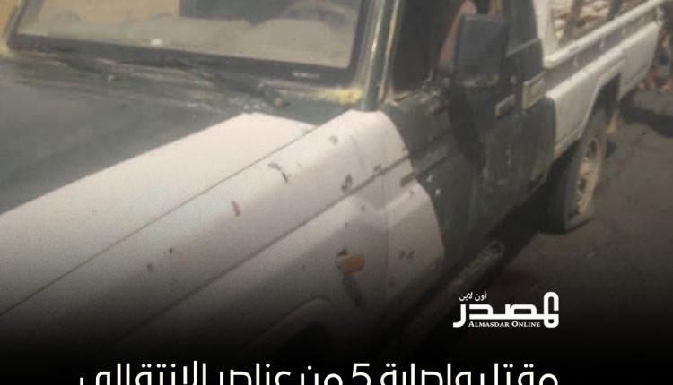 قتل وأصيب خمسة جنود من قوات المجلس الانتقالي بانفجار استهدف مركبة عسكرية في محافظة أبين جنوبي اليمن.