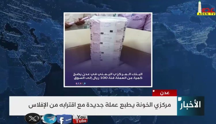 ضخ البنك المركزي اليمني في مدينة عدن الخاضعة لسيطرة المجلس الانتقالي المدعوم إماراتياً، كمية كبيرة من العملة المطبوعة بدون غطاء نقدي، إلى الأسواق في المدينة، بعد تحذيرات من اقترابه من الإفلاس.