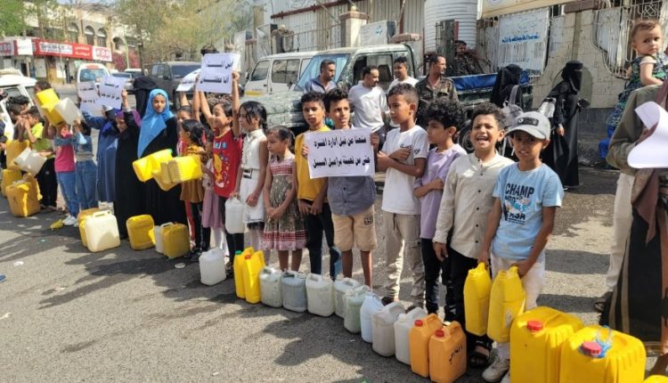 فيما ينظم الأهالي في طوابير انتظار المياه وقفات احتجاجية تعكس الوضع المأساوي الذي وصلت إليه المدينة الخاضعة لسيطرة قوات حزب الإصلاح.