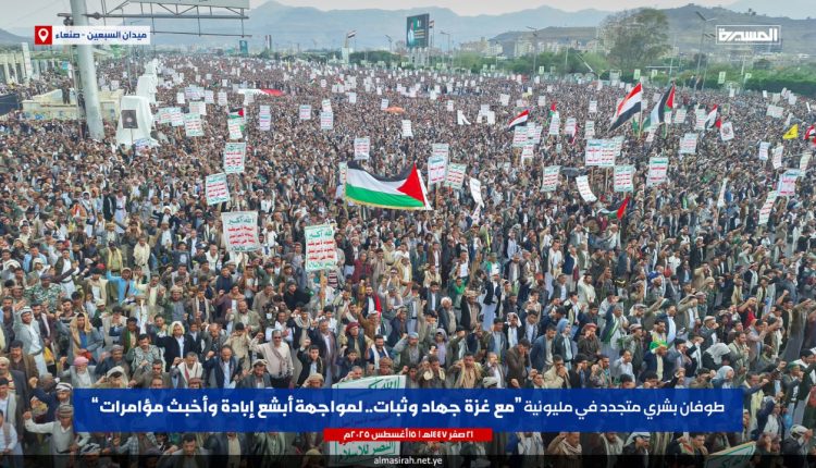 “صنعاء“| المسيرات المليونية تحذر من مشروع “إسرائيل الكبرى” وتدعو لتعزيز سلاح المقاومة..!