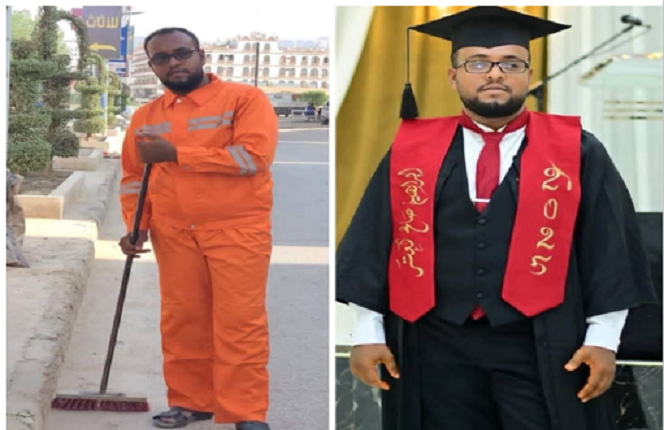 “حضرموت“| في ملحمة من التحدي والطموح أثارت إعجاب أبناء اليمن.. عامل نظافة يتخرج بتقدير “امتياز“ في تخصص التمويل والمصارف الإسلامية..!