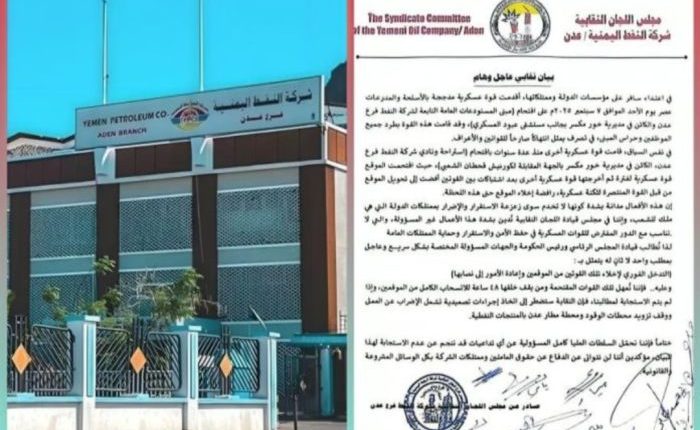 عدن“| نقابة شركة النفط تهدد بقطع إمدادات الوقود احتجاجاً على اعتداءات قوات الانتقالي على منشآتها..!