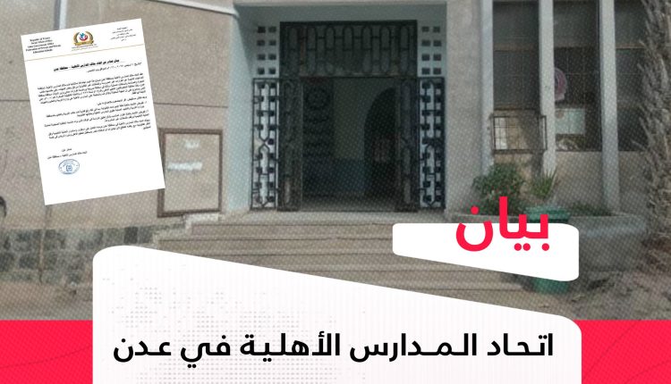 “عدن“| اتحاد المدارس الأهلية يرفض التدخلات غير القانونية وقرارات نقابية.. ويهدد باللجوء إلى القضاء..!