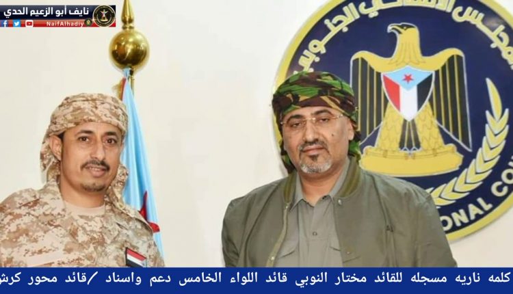وقضا قرار عيدروس الزبيدي بتعين مختار النوبي، قائد اللواء الخامس المنتشر في ردفان، قائداً لمحور أبين العسكري.