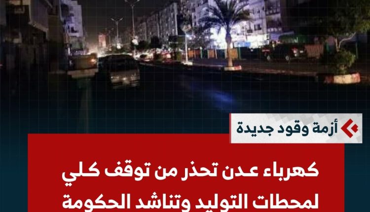 أطلقت المؤسسة العامة للكهرباء في مدينة عدن جنوبي اليمن، تحذيراً عاجلاً من انهيار وشيك لمنظومة التوليد الكهربائي، مهددة بدخول المدينة في “ظلام شامل” بسبب النقص الحاد والمُزمن في الوقود.