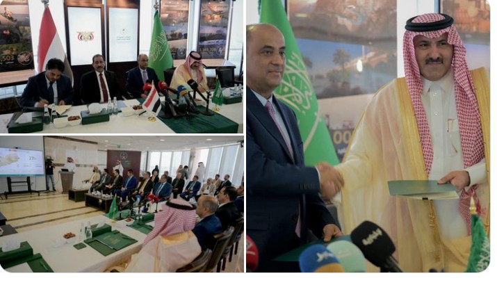 وُوُقِّعت الاتفاقيات بين حكومة عدن والبرنامج السعودي لإعادة الإعمار، الذي يترأسه آل جابر.