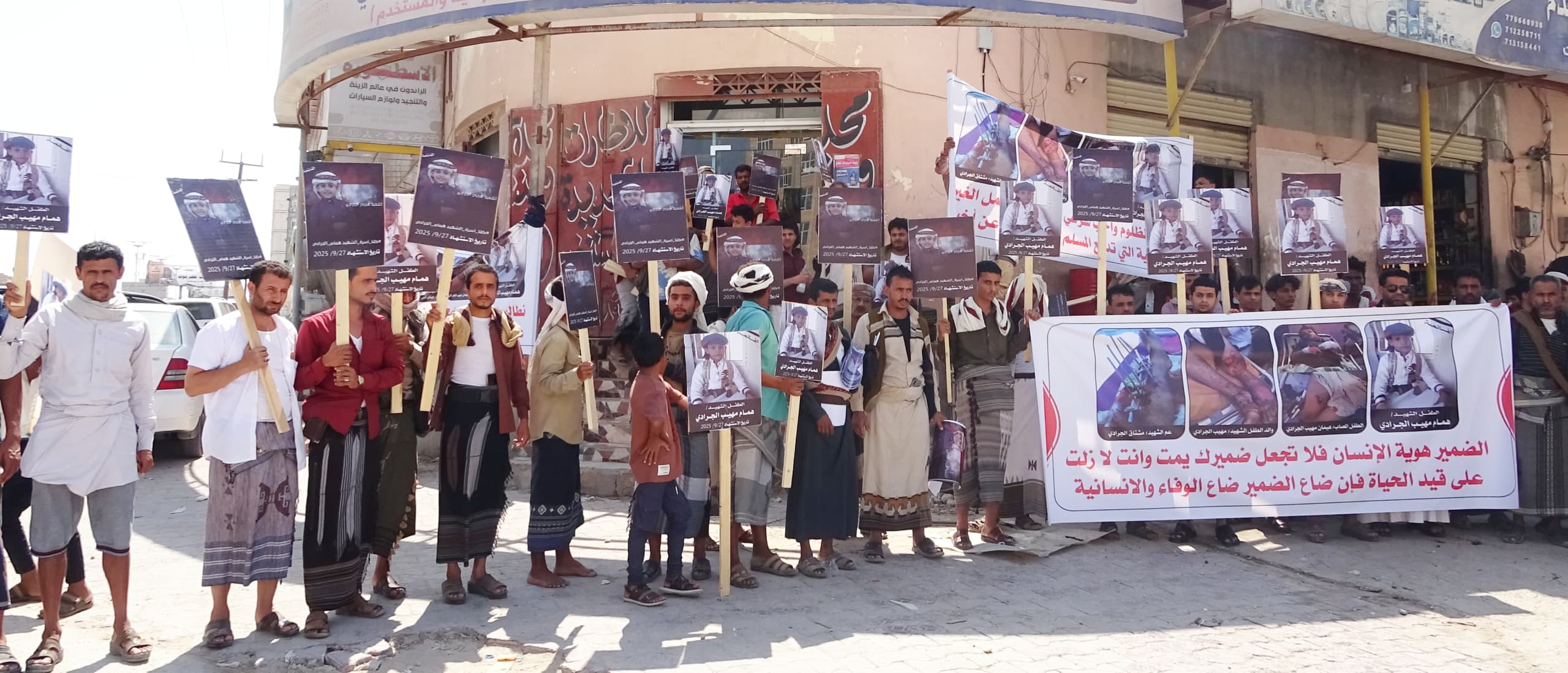 وأشار منظمو الوقفة إلى أن جثمان الطفل همّام الجرادي ما يزال محفوظًا في ثلاجة مستشفى الغيضة المركزي بانتظار استكمال الإجراءات القانونية، فيما يستمر ثلاثة من الجرحى بتلقي العلاج نتيجة إصابتهم في الواقعة، وهم: مهيب الجرادي، مشتاق الجرادي، والطفل أيمن الجرادي.