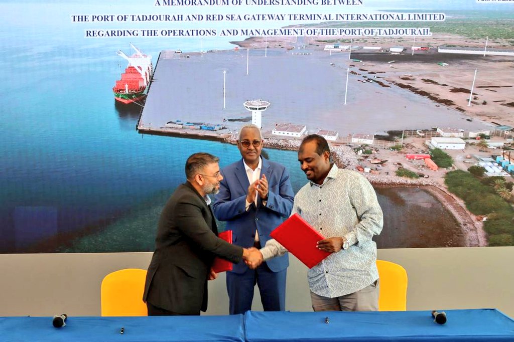 وأعلنت السعودية توقيع اتفاقية مع جيبوتي تستحوذ بموجبها على أهم موانئها عند الضفة المقابلة لباب المندب، والمعروف بـ“تاجورة”.