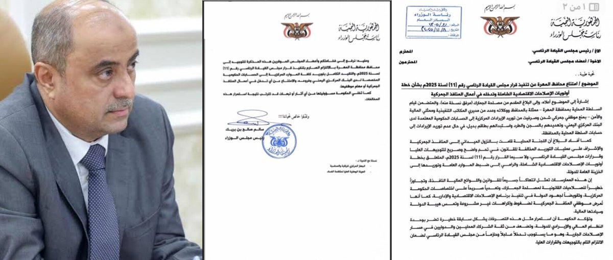 وسرَّب بن بريك توجيهاً جديداً لبن ياسر يؤكد فيه استخدام الآلية القديمة لتوريد العائدات إلى حساب السلطة المحلية.