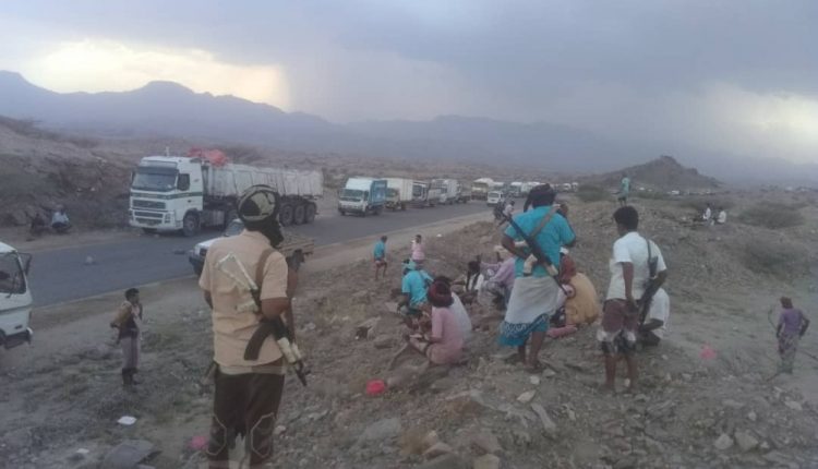 “أبين“| احتجاجاً على وقف مرتباتهم.. مئات المجندين من قوات الحزام الأمني يقطعون الطريق ويحتجزون عشرات الشاحنات..!