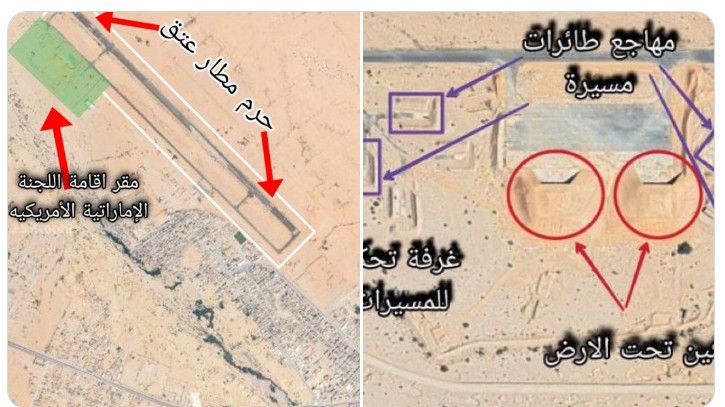 وبحسب المصادر، تعمل “اللجنة الإماراتية – الأمريكية” حالياً على تقييم قدرات فصائل محلية تشمل قوات “العمالقة” و“دفاع شبوة” و“محور سبأ”، وهي تشكيلات مدعومة بشكل مباشر من أبو ظبي. كما شيدت الإمارات مراكز متقدمة للتحكم بالطائرات المسيرة داخل مطار عتق، إلى جانب مهاجع مخصصة للمسيرات، وبنى تحتية للدفاع الجوي وملاجئ تحت الأرض تُستخدم بعضها حالياً لأغراض التدريب.