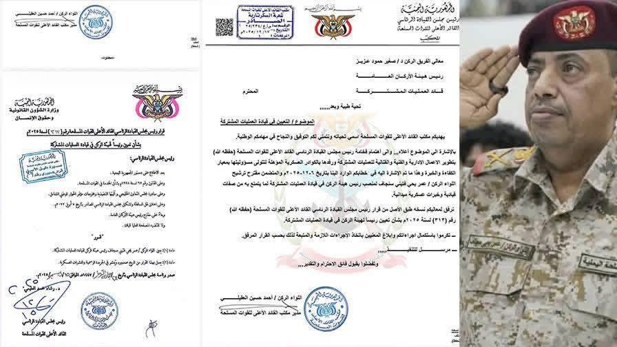 وأصدر رئيس مجلس القيادة الرئاسي رشاد العليمي قرارًا بتعيين نائب لرئيس هيئة الأركان العامة، في خطوة اعتُبرت تمهيدًا لإعادة هيكلة القيادة العسكرية العليا.