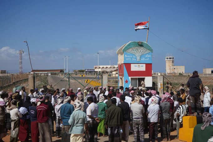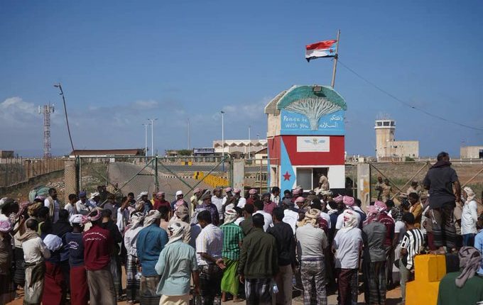وفي هذا السياق، طوقت فصائل موالية للإمارات مطار سقطرى، الذي تتخذه القوات السعودية قاعدة عسكرية لها، حيث أظهرت صور متداولة احتشاد العشرات بزي مدني أمام بوابة المطار المغلقة.