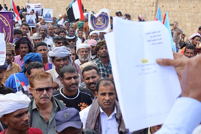 وجاءت هذه التصريحات في وقت واصل فيه أنصار الانتقالي احتجاجاتهم، حيث شهدت جزيرة سقطرى تظاهرات جديدة تُعد الأولى منذ سقوطها بيد القوات الموالية للسعودية.