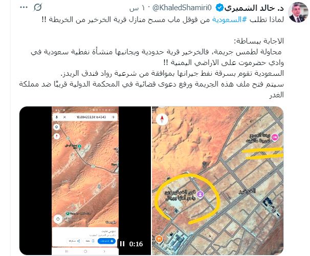 إن إزالة قرى “الخراخير” من الخارطة الرقمية قبل الواقع الميداني يعكس استراتيجية “القضم الصامت” التي تنتهجها الرياض في المناطق الحدودية الرخوة.