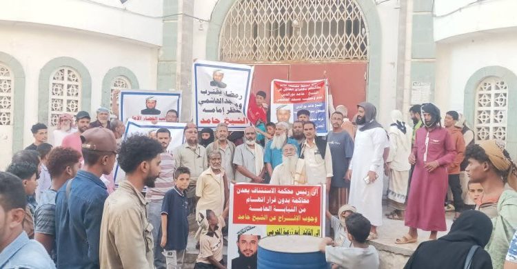 نظم العشرات من الأهالي، عصر اليوم، وقفة احتجاجية في مديرية الشيخ عثمان بمدينة عدن، للمطالبة بالإفراج عن الشيخ حامد نور الدين، إمام وخطيب مسجد الهاشمي، المحتجز في سجن البحث الجنائي منذ أكثر من ثلاثة أشهر.