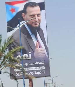 وبحسب المعلومات، فإن شيخ المحسوب على تيار القيادي في الانتقالي أبو زرعة المحرمي، أشرف على رفع لوحات عملاقة في شوارع عدن تظهر صورته وخلفه علم الانفصال، وذلك بعد إزالة صور رئيس المجلس الانتقالي عيدروس الزبيدي التي كانت تملأ شوارع المدينة، وتم تمزيق عدد منها خلال الأيام الماضية.