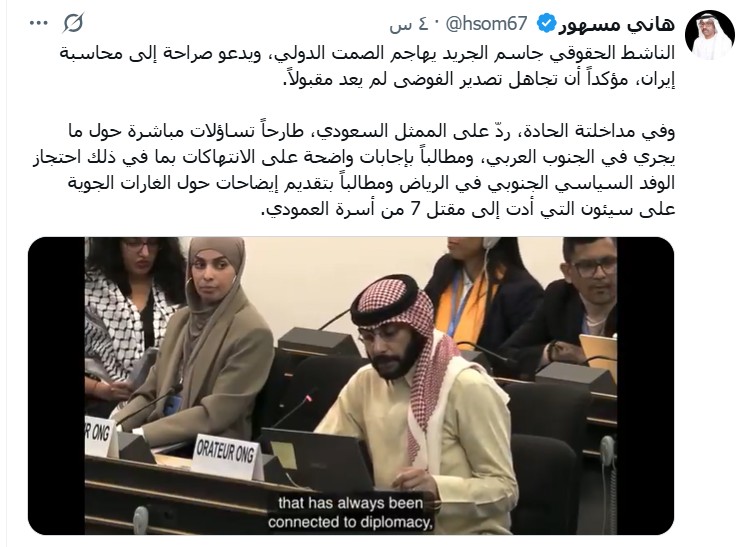 وجاء هذا التصعيد عبر فعاليات مجلس حقوق الإنسان التابع للأمم المتحدة المنعقد في جنيف، حيث أُطلقت حملة إعلامية وحقوقية واسعة شارك فيها ناشطون خليجيون ويمنيون محسوبون على أبوظبي.