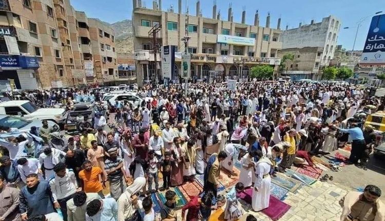 وحشد حزب الإصلاح أنصاره لإقامة صلاة الجمعة ، أمام مبنى المحافظة في شارع جمال ورددوا هتافات تطالب برحيل ومحاكمة المحافظ نبيل شمسان والوكيل عارف جامل واتهموه بالفساد وتدهور خدمة الكهرباء وتوقف المرتبات.