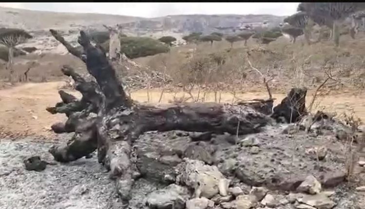 إحراق أشجار دم الأخوين النادرة في جزيرة سقطرى..!