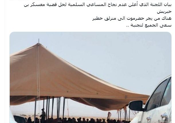 وسائل إعلام تابعة للانتقالي تداولت صوراً لعشرات المسلحين وهم يخيمون بالقرب من المعسكر ويطوقونه من جميع الجهات، مشيرة إلى أن قبائل سيبان قررت انهاء المعسكر بذريعة انه يقع على أراضيها.